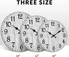 Wall Clock 14 Inch, Gray Wall Clocks Battery Operated Silent Non Ticking, Vintage Rustic Wooden Clocks Decorative for Kitchen Bathroom, Living Room, Bedrooms, Dining Room, Office 14" 1-[Wall Clock Material] - Wooden grey rustic wall clock, with MDF material. metal minute hour hand with clear dial, easy to read. 2-[Silent Working] - Using high quality silent non-ticking mechanism with smooth movement, ensure a quiet environment and keeps accurate time. 3-[Hanging Clock] - Hanging clock, has a slot in the back and packing contain hooks for installation. Powered by one AA battery (Not include) 4-[Decor Clock]- Vintage wooden wall decor clock for the office, school, classroom, home. And perfect for Christmas, Halloween, Thanksgiving gifts. 5-[Service SATISFACTION GUARANTEE] - If there is any problem with the product, please feel free to contact me immediately, we will help you. wall clock