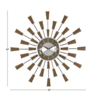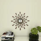 This modern metal wall clock features protruding spokes with rectangular spokes creating a windmill shaped design. Requires 1 AA battery. Battery not included. This item ships in 1 carton. The clock features silver number markers with a brown highlight and a pair of black clock hands in a sliver background. The clock mechanism runs silent. Iron wall clock makes a great gift for any occasion. Easy and ready to hang by keyhole hook in the back; nails and screws are not included. Suitable for indoor use only. This is a single wall clock. Modern style. Alarm: No Batteries Required: Batteries Required Battery Type Required: AA Clock Display Type: Analog Clock Face Material: Plastic Clock Frame Material: Metal Clock Shape: Round Color Family: Brown Color/Finish: Brown Features: No additional features Includes: No Batteries Included Movement: Quartz Number of Batteries Required: 1 Number of alarms: 0 Power Type: AA Batteries Product Weight (lb.): 2.75 lb Returnable: 60-Day Style: Modern Manufacturer Warranty: 30 Days Manufacturing Defects Clock Face Length (in.): 6 Clock Face Width (in.): 6 Clock Width: Small (Under 12 in.) Product Depth (in.): 3 in Product Height (in.): 22 in Product Width (in.): 3 in Modern style inspired by a minimalistic design with clean lines and angular structures This wall clock is made from solid iron materials Features brown clock face with black clock hands as well as silver-finished numerical markings and frame Wall clock that serves both decorative and functional purposes, an analog wall clock with a beautiful sunburst pattern This item measures 22L x 3W x 22H inches, and weighs 2.75 lbs This wall clock features a windmill shape design with protruding metal spokes tipped with rectangular figures Wipe clean with a dry cloth This wall clock is shaped and attached iron materials to form a mid-century modern design Large modern wall clock made with iron Round metal finish wall clock Single brown starburst wall clock 100% Customer Satisfaction Guarantee Customer satisfaction is our number one priority! As long as you are happy with your purchase, it would mean a lot to us if you could leave us a positive feedback to let us know that we are doing a good job. If there are any problems with your purchase, please contact us first and we will resolve the issue for you. Shipping Free Shipping Within The US We ship our merchandise directly to you for FREE from different warehouses across the United States. International Shipping We ship internationally through eBay's global shipping program. therefore international shipping charges are set by eBay and not by us. If you are an international buyer, you can view the final charges when you confirm your delivery details at checkout, before you pay. Electrical Items Disclaimer These products are manufactured according to the specifications of the US Electrical Standards and codes. If you purchase this product to use in a country outside of the United States we cannot guarantee it will work properly. We assume no responsibility if the item malfunctions or causes an accident because you tried to use the product with foreign electrical standards. The use with a converter or other voltage transforming device is at your own Risk. Please Note: Products are designed and rated for use in the US using 120 volt current. With or without a transformer, this product is not recommended for use outside the US.