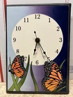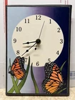 This beautiful ceramic tile wall clock features a stunning design of monarch butterflies in a gradient color scheme. Measuring 7.5 inches in width and 11 inches in length, this beautiful piece is suitable for wall display in any room of your home. The brand, All Fired Up-Canada, is known for their contemporary original pieces and this clock is no exception. Crafted using art pottery techniques, this hand-painted tile wall clock boasts a glossy finish and a quartz movement for accurate timekeeping. Requires 1AA battery (included). With a weight of 2.8 lbs and a thickness of 1 inch, this piece will make a great addition to any decorative pottery and glassware collection. Don't miss out on the opportunity to own a unique and beautiful piece of art from Canada. This will be packed securely and mailed with a service that includes tracking and insurance. Please see photos as they are part of the description. Please ask questions before buying, all sales final. USA sales only. My home is smoke and pet free. When paying by PayPal, will ship to confirmed addresses only. When buying multiple items will be happy to combine shipping. Thank you! Also, please checkout my other items. Happy shopping!!π