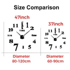 Description: Creative DIY wall clock, living room wall clock, silent wall clock Product Name: Creative DIY wall sticker clock silver Art clock fashion wall clock Roman numeral DIY creative wall clock Clock material: Metal Color: silver, black, gold Material: Acrylic+Metal+EVA Sticker material: EVA Foam (Ethylene vinyl acetate) Power type: AA battery (not include) Thickness: 10mm Movement: Quartz 37inch: Product Size: 60-90cm Hour hand: 21cm Minute hand: 30cm 47inch: Hour hand: 31cm /12.4" Minute hand: 39cm / 15.3" Clock machine: 12cm/ 4.9" Product Size: Diameter: 80-120cm The size of the clock after the decoration is how you want to decide Decorate your walls. Package included: 1 x DIY Roman Numeral Acrylic Mirror Wall Clock Sticker 1 x Clock mechanism Note: 1.Please allow 1-3cm error due to manual measurement. pls make sure you do not mind before your purchase. 2.The colors may have different as the difference display,pls understand. 3.There is a layer of film on the product, Please remove the protective film Note: The pointer can be bent and straightened. It is estimated that the pointer will bend during transportation, which is normal. Please straighten it straight after receipt. If you mind please don't buy !!! 37 Inch Product Photo 47 Inch Product Photo