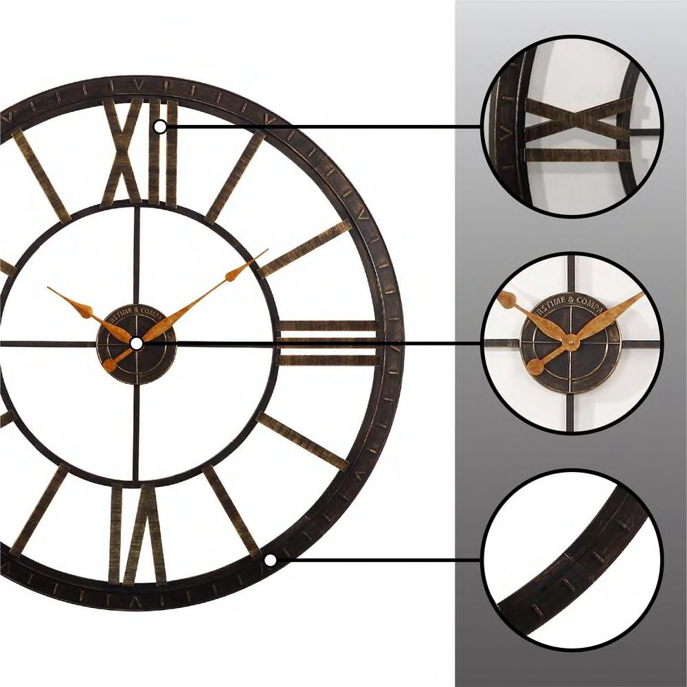 Wall Clock Oversized Big Time 40 Inch Durable Plastic Bronze Finish Home Decor Measures 40 in. Dia x 2 in. W Requires 1 AA battery for operation Oil rubbed bronze frame and delicate gold hands for antique look Make a big statement in any room with the FirsTime & Co. Big Time Wall Clock. Featuring Roman numerals, an oil rubbed bronze finish and delicate gold hands, this timepiece radiates simplistic elegance while adding a touch of sophistication to your home. Take this timepiece home today. Oil rubbed bronze finish for an antique look Delicate gold hands Roman numerals as the quarter markers for an elegant style Makes a statement in both home and office Requires 1 AA battery - not included Alarm No Batteries Required Batteries Required Battery Type Required AA Clock Display Type Analog Clock Face Material Plastic Clock Frame Material Plastic Clock Shape Round Color Family Bronze Color/Finish Oil Rubbed Bronze Features No additional features Includes No Batteries Included Movement Quartz Number of Batteries Required 1 Number of alarms 0 Power Type AA Batteries Product Weight (lb) 3.7 lb Style Industrial Clock Face Length (in) 40 Clock Face Width (in) 40 Clock Width Small (Under 12 in.) Product Depth (in) 40 in Product Height (in) 40 in Product Width (in) 2 in Shipping Fast shipping is very important for us. Our standard US shipping service is FREE. Your order will usually be shipped within 3-5 business days upon full payment received. Your order will usually be delivered within 5-14 business days after the handling time. **Note: Handling and shipping times are usually much faster than stated above, but due to shortages of materials and workers shipping on some items may take more time.** We do not ship to PO address. We reserve the right to cancel any order for any reason at any time. We are not responsible for undeliverable addresses. Returns and payment Note: No returns are available on items shipped outside of the USA. FeedBack Your feedback very important to us, after you get your package and you are satisfied with our service please leave us positive feedback If you have any problem with your order / any questions, please contact us before leaving any type of feedback. For any questions, use eBay's contact system Please visit our eBay store to check out other items for sale! Thank you for shopping at our store.