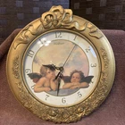 Wall Clock Rafael Angels Cherub Gold Bubble Glass Waltham Vintage Ornate 1995. Body and frame molded plastic and the front is a bubble glass made of glass not plastic clock works and clean