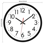 Easy to Read - 12”Large black numerals and red second hand with a non-reflective white clock face that enables you to read it from a distance across the room. The glass lens makes it easy to clean and keeps dust out of the dial Keeps accurate time - The battery operated wall clock tells you the time all day long and is suitable for daily use Silent wall clock - No ticking and buzzing sound, can ensure you work and sleep quietly Simple design - The plastic case of the wall clock is high quality and very sturdy, durable enough for gyms, living rooms, offices, offices, schools Easy to install by oneself - Come with a hook, wide slot in back for easy hanging. Battery powered, requires AA carbon battery (not included). (Alkaline battery or rechargeable battery which may have influence on the life span of clock movement, as well as the accuracy of the time).
