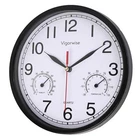 Product Specification Materials: Plastic frame + Glass cover + Aluminum clock hands Size: 8" Diameter Power Source: 1 x AA battery (not included) How to use: 1. Power: Insert one AA battery. 2. Thermometer & hygrometer will automatically measure/display outside temperature & humidity; No need to set or adjust. Color: Black Movement: High quality silent sweep clock movement Package Included: 1 Piece of Wall Clock. 🕘Silent Battery Operated Wall Clock. Quartz movement and lightweight second hand makes clock sweeps in silent and the time in accuracy. Non-ticking clocks ensure a good sleeping or working environment. 🕘Easy to Read. The black wall clock come with HD glass cover and big black numbers dial makes it easy to read from anywhere in the room. 🕘Beautiful & Stylish Temperature and Humidity Clock. The clocks dial has a thermometer and a hygrometer gauge. The two gauges make wall clock looks special. Clocks frame are made of plastic to ensure safe and not easy cover dust. This beautiful clock is good for decor any room, such as living room/kitchen room/classroom/dining room and office. 🕘Analog Ambient Dual Temperature Clock. You can always know the current temperature. No need to set or adjust the living room wall clock. 🕘. If you have any question about our product, please us in any time, we will help you solve the problem try our best.