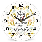 Menu 1. We require immediate payment. 2. We currently accept payment via eBay managed payments only. 3. Once payment is cleared, we will dispatch your shipment within 1-3 business days. Please refer to the "Shipping" tab for more information regarding shipping speed to your destination. Wall Clock, with God All Things are Possible Wall Clocks Vintage Wooden Battery Operated Non Ticking 10 inch Clock Silent Art Bedroom Kitchen Clock Home Decor for Girls Kids Product description 【Easy to Read】: Clock measures 10 Inch in diameter. Large Arabic Numerals. Black hour and minute hands against red second hand ensures a visible view from distance and at all angles in your room. Always keep accurate and reliable time. 【Considerate Design】 : Clock made of environmental friendly MDF material. No shiny glass cover, no reflection to make it difficult to see the time. Easy to reset without the plastic over top. Sturdy back hook provides super easy installation. 【Easy to Use】: Uses 1 "AA" battery - Not included (Note: Plus side of your battery should be inserted first), a good battery can be used for more than one year, energy saved; Come with 1 hook, wide slot in back for easy hanging, and equipped with holders, easy to stand on desk 【Silent Non Ticking】: Premium Quartz Sweep Movement offers completely quiet environment when you need time to study, take a nap or have an important appointment. A relief to not hear any noise. 【Occasions】: Pretty and Romantic wall clock brightens up your living room, bedroom, bathroom, kitchen, dining room or hallway. A fantastic and colorful final addition to your wall decor. Also a nice gift for your family or friends on birthday, weddings, festivals or anniversaries. PLEASE MESSAGE US IF YOU HAVE ANY OTHER QUESTIONS, AND MANY THANKS FOR READING ALL OF THIS. Copyright ©#. All Rights Reserved.