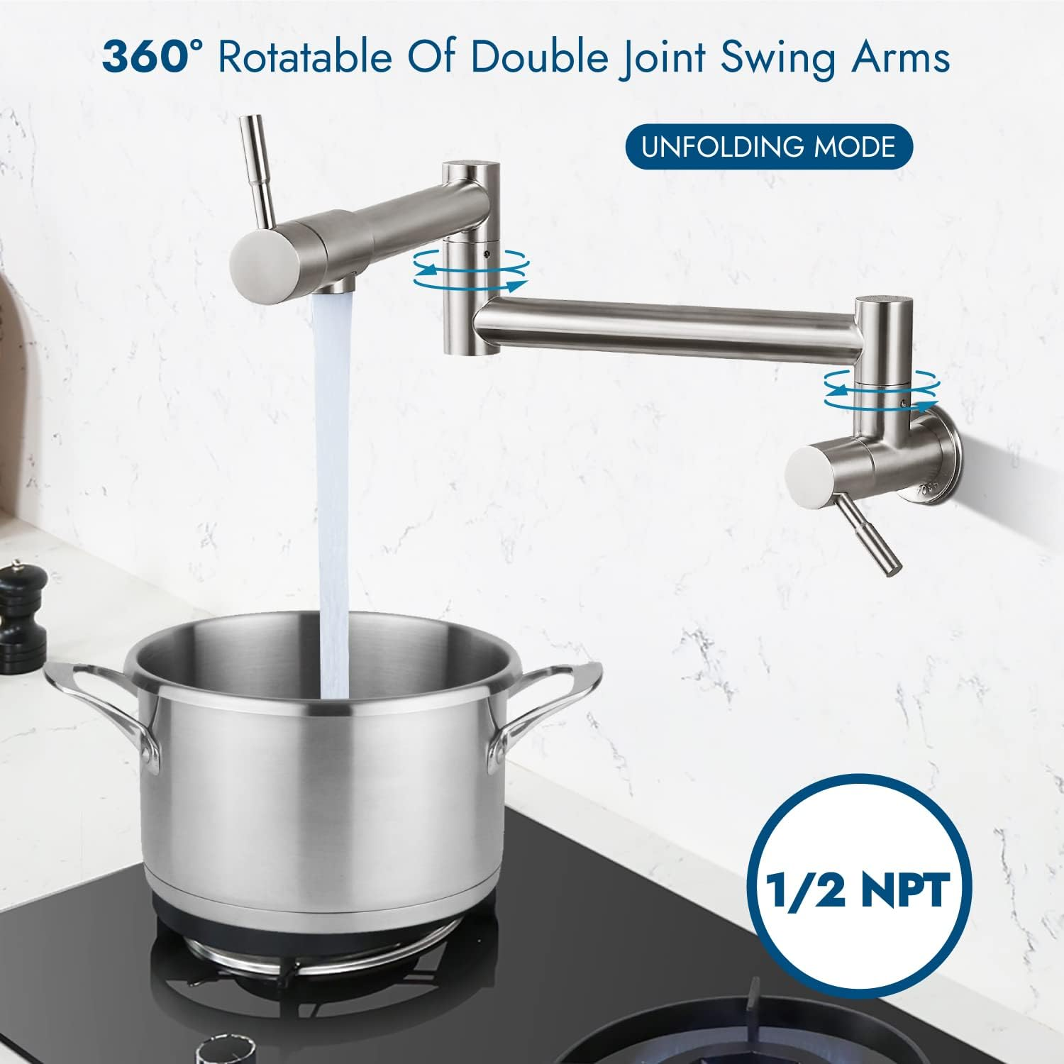 Deck Mounted Pot Filler Faucet with Hot and Cold Water Single Handle for Countertop Double Sink