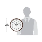 Featuring a simple classic design, the Walnut Finish wall clock is perfect for the office, dorm room or other space that needs a functional and basic time piece. This indoor wall clock features a walnut finish case, glass lens as well as a second hand. With its plain white face and black hands, this clock can easily be read anywhere it hangs. Additionally, the Walnut Finish wall clock features silent movement for peace & quiet. At 14", this indoor wall clock is the perfect size for offices, schools and dorm rooms. Features: 14 in Round Wall Clock for Indoor UseQuartz Movement for Accurate Time KeepingGlass Cover over a White Face & Black Metal HandsUses 1 AA Battery (Not Included)14 in H x 14 in L x 2 in DSilent Movement for Peace & Quiet Free Shipping Over $49.99* Details Walnut Finish Brown Simple 14 inch Wall Clock by Infinity Instruments - 14 x 2 x Product Description: Featuring a simple classic design, the Walnut Finish wall clock is perfect for the office, dorm room or other space that needs a functional and basic time piece. This indoor wall clock features a walnut finish case, glass lens as well as a second hand. With its plain white face and black hands, this clock can easily be read anywhere it hangs. Additionally, the Walnut Finish wall clock features silent movement for peace & quiet. At 14", this indoor wall clock is the perfect size for offices, schools and dorm rooms. Features: 14 in Round Wall Clock for Indoor Use Quartz Movement for Accurate Time Keeping Glass Cover over a White Face & Black Metal Hands Uses 1 AA Battery (Not Included) 14 in H x 14 in L x 2 in D Silent Movement for Peace & Quiet