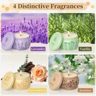 WarmEmbrace Scented Candles, 17.6oz Christmas Candles Presents for Mom Women Men, Candle Set, 120H Burning, Soy Candles for Home Scented, Lavender | Vanilla | Rose & Sandalwood | Jasmine - 4 Pack Product Details Package Dimensions : 7.28 x 7.28 x 2.13 inches; 1.13 ounces Manufacturer : WarmEmbrace Brand: WarmEmbrace Number of Items: 4 Scent: Lavender, Vanilla, Rose & Sandalwood, Jasmine Indoor/Outdoor Usage: Indoor Specific Uses For Product: Ambience, Home Fragrance, Decoration Shape: Cylindrical Material: Soy Wax Occasion: Holiday/Seasonal Seasons: Winter Special Feature: scented, non_toxic 4 Piece Luxury Set: The WarmEmbrace Scented Candle Set is available in 4 piece sets, each containing four exquisite fragrances: lavender, vanilla, rose and sandalwood, and jasmine. You can choose different scents for different moods Natural Soy Wax: WarmEmbrace Candles are made from 92% natural soy wax and 8% aromatic oils. The soy candle features a lead-free cotton wick that can even burn without producing black smoke. It is a partial winter candle set Long Burn Time: Candle weighs 4.4oz per jar. A 4-piece candle pack provides a warm glow and delightful scent for 100-120 hours, suitable for extended relaxation or special occasions Practical Set: Candles are packaged to impress as a present. We use a small cloth strip for each jar to make it easy to open the lid. Each candle comes in a beautiful jar that is both decorative and a container for small items when the wax runs out Burning Tip: Allow the candle to burn for 2-3 hours upon first use to ensure the candle's surface melts evenly and releases the fragrance fully. Be aware of the high temperature of the outer surface of the jar candles when using, so handle with care
