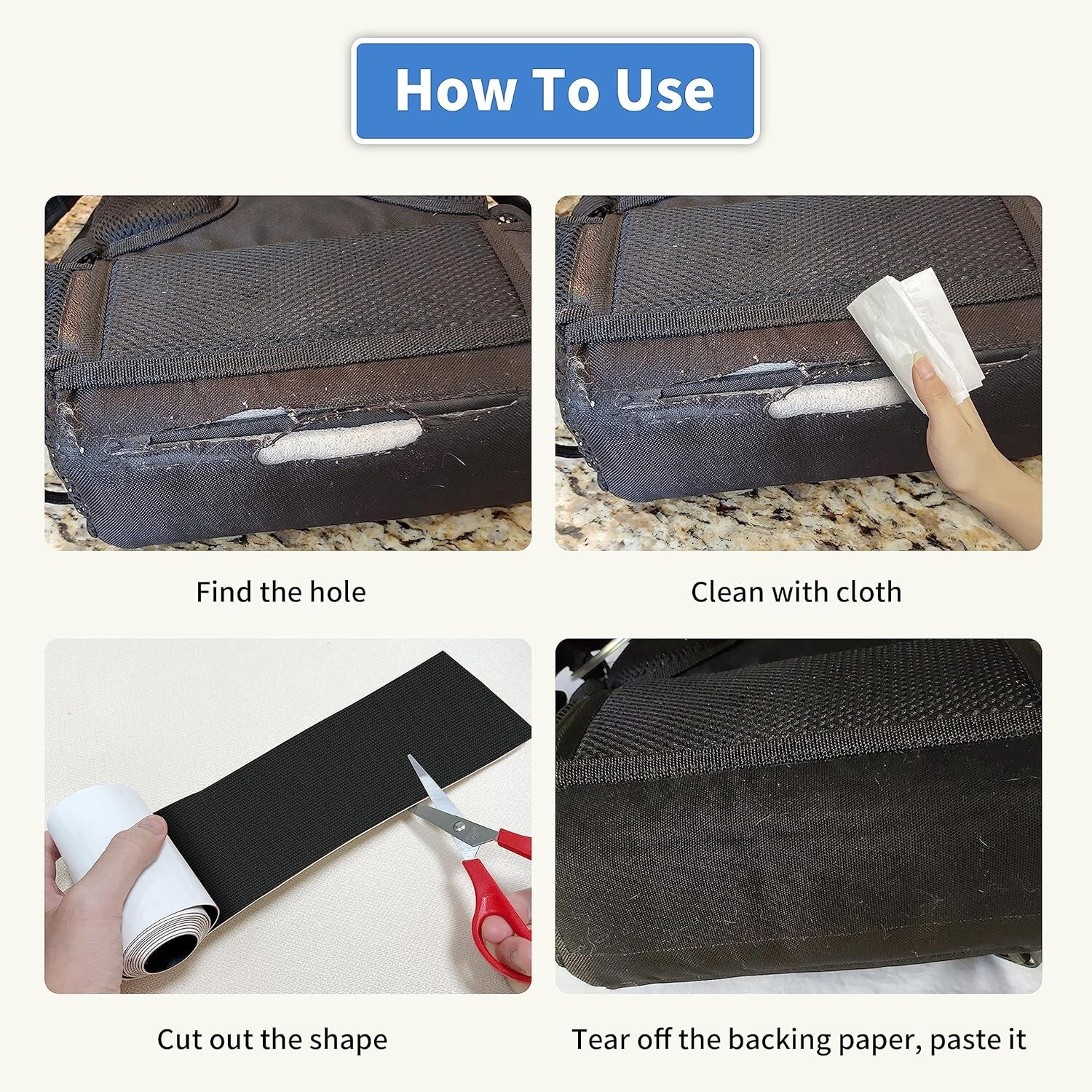 Canvas Repair Tape,Outdoor Gear Patch, 4×63 Inches,Waterproof,Self-Adhesive for Repairing Boat Covers,Sun Shades,Sofas,Tents,Lounge Chairs,Awnings (Black) Waterproof Cotton Canvas: The self-adhesive canvas outdoor repair tape is made of high-density canvas material that is wear-resistant and scratch-resistant. The fabric surface is coated with a waterproof layer, providing excellent resistance to water penetration, making it suitable for outdoor use. The patch has a thickness of 1.2mm, which is moderate and flexible, allowing it to blend well with outdoor equipment such as umbrellas and tents, and can last for an long period. Professional Repair Adhesive: The backing adhesive is made of fabric-specific adhesive, which is 20% more adhesive than other transparent repair tapes, ensuring stronger adhesion and reducing the chances of detachment. The smooth repair process and longer lifespan of the canvas patch allow for easy repair of damaged outdoor gear by simply peeling and sticking, providing a fast and efficient solution. Wide Applications: The canvas repair patch is suitable for repairing various outdoor gear, such as tents, sunshades, awnings, sails, sofas, and more. It can easily refurbish and repair scratches, holes, cracks, and other damages, eliminating the need to purchase new furniture or outdoor gear. The lightweight packaging allows for easy carrying and storage. Instructions for Use: Ensure cleanliness and dryness of the damaged area, then cut the patch to the appropriate size. Peel off the backing paper and apply the patch to the area that needs repair, completing the process. This quick and convenient method saves a significant amount of repair time and helps you solve your problems effortlessly. Better Customer Service: For every set of canvas repair kits sold, we offer full exchange or refund if you are unsatisfied with our products for any reason. Due to slight color variations caused by different screens and photo shooting, you may choose the wrong color. We display our full range of color options on the detailed information page to assist you in making a better choice. If you're still unsure, please don't hesitate to contact us for assistance.