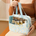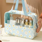 Features: Versatile Clear Cosmetic Bag: This 3-piece set includes a portable makeup bag, skincare wash bag, and large capacity beauty organizer, ideal for storing cosmetics, toiletries, and skincare essentials on the go. Water-Resistant Design: Made of durable pvc material, this makeup bag is water-proof and easy to clean, ensuring your beauty products stay dry and organized while traveling. Secure Zipper Closure: The travel cosmetic pouch features a sturdy zipper closure to keep your items secure and prevent spills or leaks, making it a practical and convenient choice for daily use. Thoughtful Gift Idea: This cosmetic bag set makes a perfect gift for girlfriends, or anyone who loves beauty and organization, offering a stylish and functional solution for small items storage management. Practical and Stylish: With its transparent design and spacious compartments, this clear cosmetics bag combines practicality with style, allowing you to easily find and access your while on the move. Specification: Material: PVC Size: 29.5*21cm, 12*21cm, 26*16cm Notes: Please allow slight tolerances in size due to manual measurement, and lighting in photography may result in a difference in color than in real. Package includes: 3*Cosmetic Bags