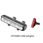 PRDUCT DETAIL Model: HYY900-2000mAh Material: Aluminum Plastic Shell Mode:5 Modes Click to open: near light - far light - far and near full light - flicker-Daylight mode Long press to open: daytime running light Waterproof: IPX-5 Lumen: Max 900 Lumen Range: About 200M Battery: About 2000 mAh Charging Time: About 3 hrs Working time: 2-3.5h Power bank: NO Model: HYY1400-4000mAh Material: Aluminum Plastic Shell Mode:5 Modes Click to open: Near light - High beam bright - Far and Near full light - Flashing -Daylight mode Waterproof: IPX-5 Lumen: Max 1400 Lumen Range: About 150-300M Battery: About 4000 mAh Charging Time: About 4.5 hrs Working time: 2.5-4.5h Power bank: NO Model: HYY2600-8000mAh Material: Aluminum Plastic Shell Mode:4 Modes,Near light - High beam bright - Far and Near full light - Flashing Waterproof: IPX-5 Lumen: Max 2600Lumen Range: About 200-500M Battery: About 8000 mAh Charging Time: About 9 hrs Working time: 2.5-7.5h Power bank: YES Product Features: 1. High beam/low beam. Anti-glare 2. Aluminum alloy , good heat dissipation 3. Durable/Anti-Fall, Long Range 4. Built-in battery.USB Rechargeable High lighting bicycle headlights 1400lumens,4000 mAh,five kinds of light patterns Product detail Material: ABS+PC Lamp beads: COB lamp beads Mode: 6 modes Endurance time: 10-100h Weight: about 22g Water resistance: IPX6 Battery: 3.7V/260mAh polymer Warranty: 1 year Product feature Riding safety brake intelligent induction Freely switch four modes ABS+PC shell PC lens + COB lamp beads IPX6 waterproof Type-c rechargeable 260mAh battery Weighs only 22g Smart Brake Tail Light #Four modes|Intelligent induction|Type-c charging#
