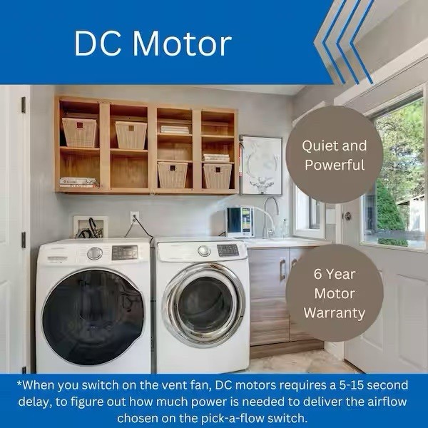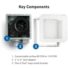 About This Product The Whisper Choice DC exhaust fan with Pick-A-Flow CFM allows you to choose your airflow, 80 or 110 CFM. Simplify the selection process and ensure optimum CFM performance while eliminating humidity, mold, mildew, and other air pollutants from the bathroom and increasing your air quality. The DC-ECM Motor technology offers reduced energy costs, long life and is environmentally friendly. In addition to bathrooms, this fan is your ventilation solution for medium-to-large sized rooms - laundry room, sunroom, basement, or garage. Highlights Bathroom Vent Fan: Equipped with a revolutionary DC/ECM motor, this whisper quiet, Energy Star-certified exhaust fan offers efficient ventilation for medium to large sized rooms; UL listed for tub/shower enclosure when used with a GFCI-protected circuit Customizable Airflow: Features Pick-A-Flow technology that allows you to select your desired airflow from 80 or 100 CFM at the flip of a switch for your room size and usage needs Easy Installation: Flex-Z Fast Bracket simplifies installation with a single-hinge bracket for easy positioning so you don't need to access your attic to install the fan and includes options for 4" or 6" ducting Explore Our Selection: We offer a wide range of vent fans including fans with LED lights, timers, heaters, and condensation sensors for humidity control, plus installation kits, soffit vents, replacement motors and fan cover grilles Healthy Living Begins with Clean Indoor Air: Ensure a healthy home for your family with our high-performance Panasonic ventilation systems, air purification devices and HVAC solutions Click here for more information on Electronic Recycling Programs Return Policy Product Information Internet # 320520625 Model # RG-C811A Store SKU # 1007773039