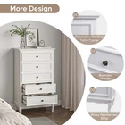 Specifications Place of Origin China Main Color White Main Material Wood Dangerous Goods #dangerFlag# Dimensions & Weights Assembled Length (in.) 47.00 Assembled Width (in.) 28.00 Assembled Height (in.) 16.00 Weight (lbs) 78.00 Product Features Ample Storage: Measuring 27.5" x 16" x 46", this tall dresser offers vertical storage with a roomy tabletop and 5 large drawers for clothes, blankets, and toys. With silent anti-derailment slides, it ensures smooth and quiet movement for a serene atmosphere. Eco-friendly and Odorlessl: Crafted from P2-certified MDF and ASTM paint, this modern white fluted dresser ensures durability and environmental consciousness, offering a healthy and visually appealing space. Perfect as a housewarming gift for family, friends, or loved ones. Enhanced Safety: This 5-drawer dresser is equipped with a decorative wave-shaped reinforcement bar underneath, improving both its visual appeal and stability. With a rear anti-tip design, it guarantees a safe and steady stance. Modern Charm: Our dresser exudes modern chic with molded corners, zinc handles, a wave-shaped bottom, and unique wooden legs. Versatile as a bedroom cabinet, nursery storage, or entryway use. Premium Service: Choose from our series of bedroom cabinets, including nightstands, 3-drawer, 5-drawer, 6-drawer, and 7-drawer options to match your home decor. Assembly required and contact us with any questions. Description