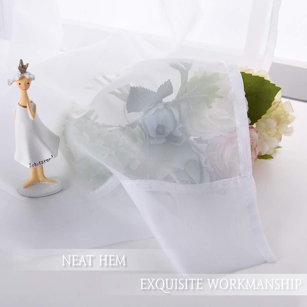 READY MADE: 1 panel per package. Each panel measures 100" wide, 84" long (from top edge of installed rod to bottom sheer). 2" Diam rod pocket opening to suit most curtain rods. ELEGANT DESIGN: With top dual rod pockets design, the curtain appears more lovely and vivid. Besides, 3" sewn rod pocket in the bottom add more vertical sense to the light sheers. NICE SHEER: The window curtain is soft and not lined. Quality touching voile sheer will provide you with a sense of beathable and lightness, making your time more refresh and relax. WIDE COMPATIBLITY: Extra wide Voile sheer valance is perfect for living room, bedroom, hall, villa and patio door decor. The panels also suitable for casual, modern luxury and country style. EASY CARE: Machine washable in cold water (make sure the water temperature is lower than 86℉ ), tumble dry, quick iron or steam clean when it is necessary. Easy use easy care.