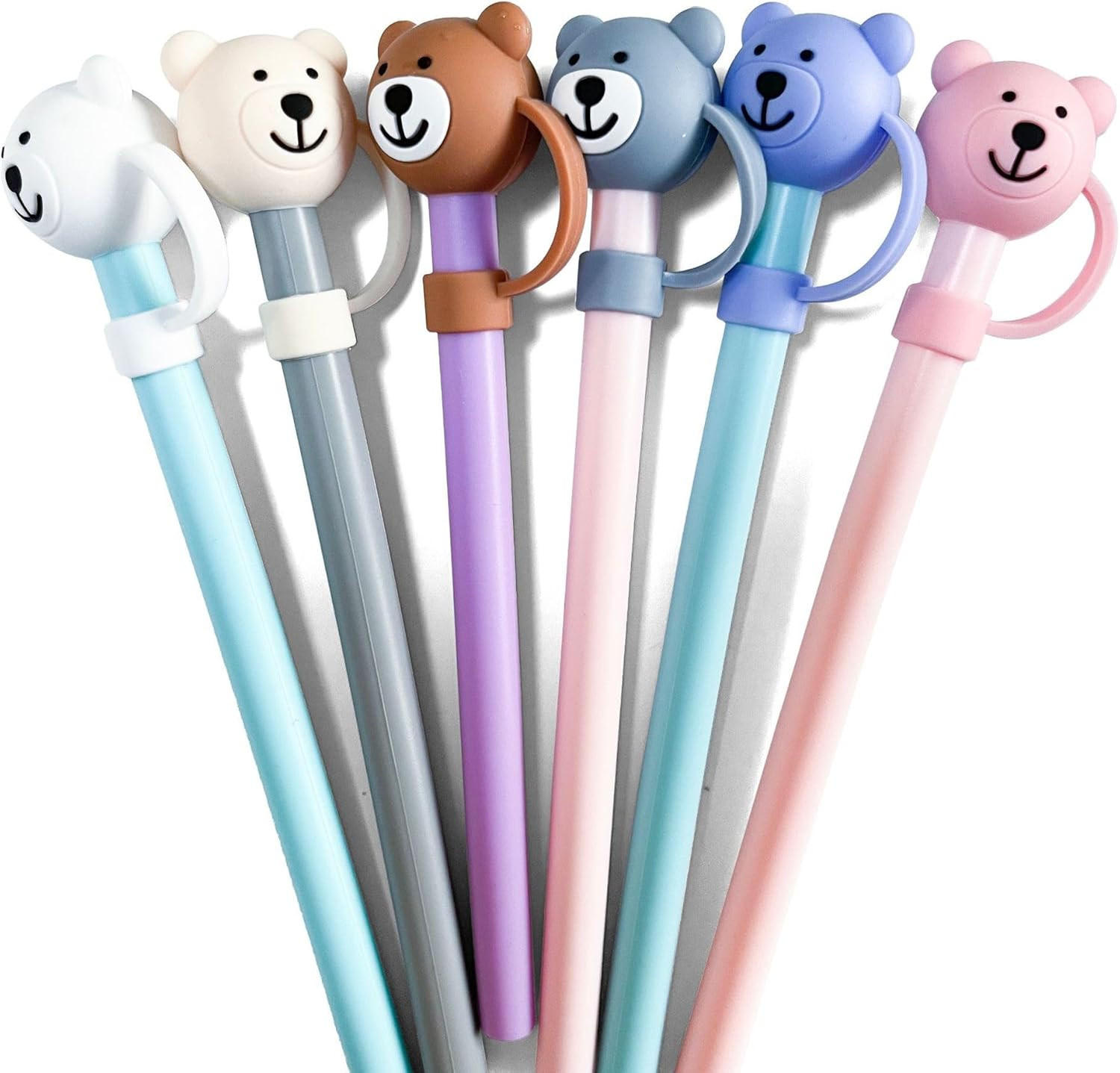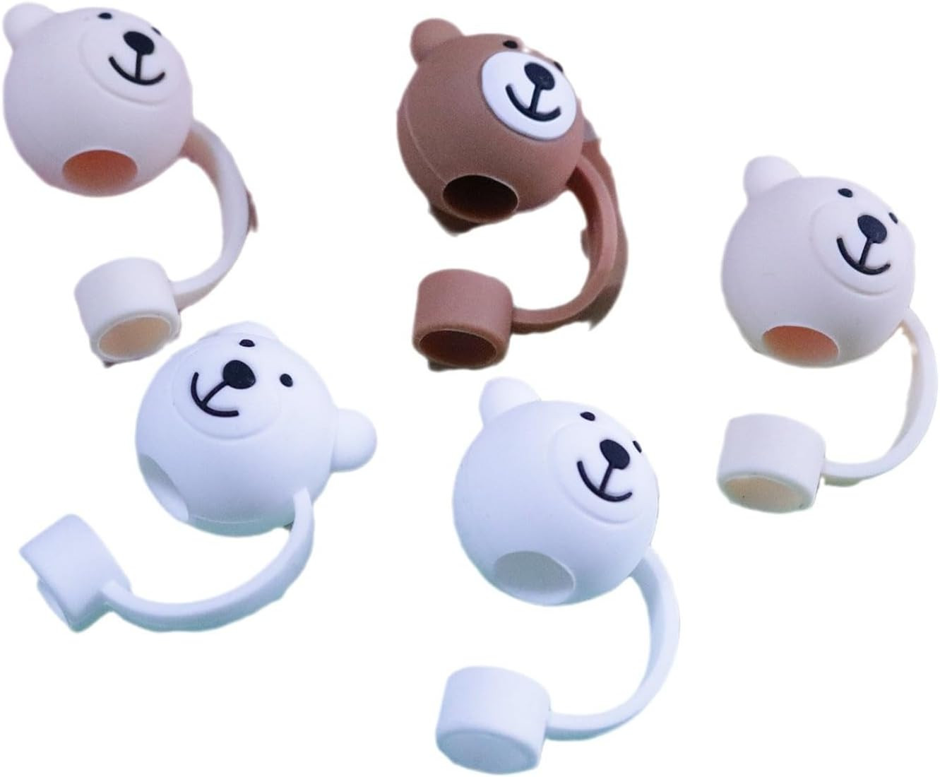 White Bear 10mm Straw Cover Cap for Stanley Cup, Bear Silicone Straw Toppers Compatible for Stanley 30&40 Oz Tumbler,0.4in Cute Drinking Straw Tip Covers for Stanley Cups Accessories