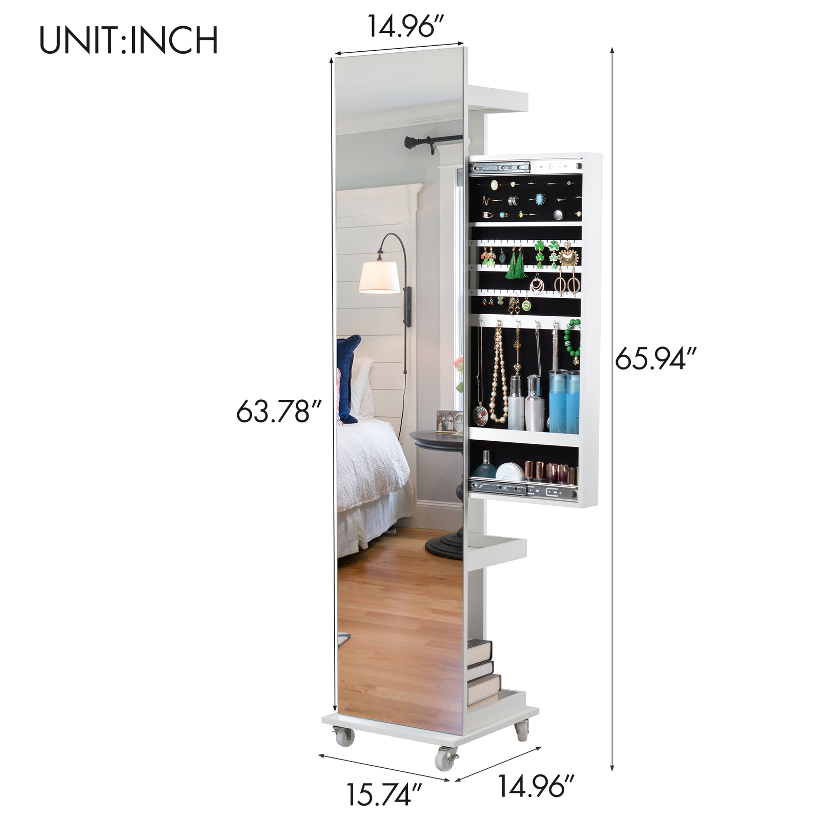 This full-length mirror jewelry cabinet is a game-changer! The sleek white design blends beautifully with any decor, and the 360° swivel makes accessing my jewelry effortless. Inside, the soft velvet lining keeps my pieces safe from scratches, while the smart organization—22 hooks, 4 shelves, and a bracelet rod—keeps everything tidy. I love the locking feature for added security, and the space-saving design fits perfectly in my room. It’s stylish, functional, and totally worth it—no more digging through tangled necklaces!