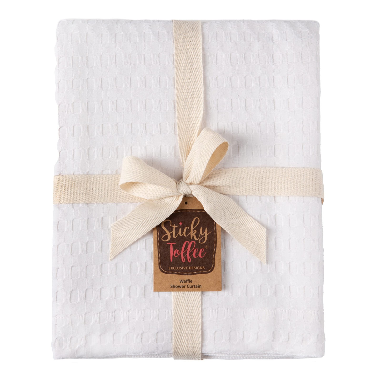 This woven waffle shower curtain is made of a durable, high-quality Oeko-Tex certified cotton polyester blend. Oeko-Tex ensures this product surpasses the highest standard of testing and helps you to make responsible decisions that protect our planet for future generations. Designed for a standard size bathtub shower for use with an interior waterproof shower curtain liner (waterproof liner not included). The waffle weave shower curtain features a fresh woven design that drapes beautifully for a timeless, clean look in your bathroom, spa or hotel. Machine wash and tumble dry for stress-free care. We’ve chosen a unique waffle weave that maintains its structure and size after washing. You don’t have to be afraid of shrinkage or deformation of the waffle fabric after laundering. Each curtain contains 12 ring holes that fit standard hooks or rings (not included) for a simple installation. OEKO-TEX CERTIFIED COTTON/POLYESTER: This woven waffle shower curtain is made of a durable, high-quality Oeko-Tex certified cotton polyester blend. Oeko-Tex ensures this product surpasses the highest standard of testing and helps you to make responsible decisions that protect our planet for future generations. 72 INCH X 72 INCH STANDARD SIZE: Designed for a standard size bathtub shower for use with an interior waterproof shower curtain liner (waterproof liner not included). SIMPLE WAFFLE DESIGN: The waffle weave shower curtain features a fresh woven design that drapes beautifully for a timeless, clean look in your bathroom, spa or hotel. CARE FOR YOUR SHOWER CURTAIN: Machine wash and tumble dry for stress-free care. We’ve chosen a unique waffle weave that maintains its structure and size after washing. You don’t have to be afraid of shrinkage or deformation of the waffle fabric after laundering. BUILT-IN RING HOLES: Each curtain contains 12 ring holes that fit standard hooks or rings (not included) for a simple installation.
