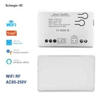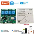 Tuya smart WIFI Wireless Smart Home Switch Remote Control with Amazon This product is a wireless switch, supports inching /self-locking mode. Users can add the device to the APP Smart life in order to remotely control connected home appliances or devices. 1、In self-locking mode, customers can remotely turn on/off connected devices immediately. 2、When in inching mode, customers can have two wiring ways to select, and you can set the inching time in APP . 3、WIFi control model, no need to program. No matter where you are, you only need to download a APP to connect the wifi and control the cloud. 4、RF mode , you can control the board with RF433 remote controller. Tuya 1/2/4CH Wifi Smart Switch Use for 1.Remotely give a pulse signal to turn on/off Lights,Lamps and other home appliance. 2.Remotely give a pulse signal to turn on/off Garage Door,Door Access. 3.Remotely give a pulse signal to control DC Motor,AC Motor to Forward and Reverse. Features: *App Support: Free iOS and for Android mobile Tuya APP/Smart Life APP. *Sync Status: Real-time device status provided to App. *Remote ON/OFF: Turn 4 electrical devices on/off remotely from anywhere. *RF Remote control: Turn on/off by 433MHz RF Remote indoors. *3 Working Modes: Switch among interlock/self-locking/inching modes. *Independent control: Control each gang separately in Tuya APP/Smart Life APP. *Supports remotely turn on or off connected appliances, for example light, electric kettle, electric rice cooker, electric curtain, Garage door opener,Motor,etc. *Timing: Supports 8 enabled countdown/single/repeat timing tasks to turn on/off at specified time. *DIN Rail Mounted: Great for industrial control. *Voice Control: Compatible perfectly with Amazon Alexa, for Google Home, for Google Nest,IFTTT. *Share Control: Control your smart home together with your family. Note: Please make sure to select the right model before buying ,or leave us a message before shipping Noted : Your have the correct wif password. Your smart phone or tablet must have access to APP store or google play. Your router is MAC-open. Your smart phone or tablet has connected to a 2.4g wifi with internet. Default inching time 1s , you can set inching time from 2s to 3600s in APP ( smart life / tuya smart). Features: Input voltage : DC/AC 7-32V , AC 85-250V,Micro USB 5V input. Max current : 2200W/10A. WiFi standard : WiFi 2.4 ghz b/n/g. Size : 1CH 69*41*20mm,2CH 10*35*20mm,4CH 78*74*20mm. The life of Relay Model is more than 1,000,00. Default inching Function: Press the open relay by mobile phone, then cut off the pull-on imediately, you can set the inching time in APP , it has the timing-share function at the same time. Self-locking when press the inching and locking button with the light on. Press open relay to pull-on, press close relay to cut off. Include: 1* wifi module 1* manual Overview: This product is a 4 channels universal WiFi wireless smart switch with RF 433MHz module, for your smart home system to remotely and automatically turn on/off home appliances and electronic devices by phone APP. It also can be controlled by RF remote controller indoors. It can connect and control four appliances on APP at the same time, and you can independently turn on/off each of the four gangs. It also supports timing turning on/off the appliances at a specified time, and share to others so that you can control your smart home together with your family. You can also voice control your home appliances by Amazon Alexa, and for Google Home/Nest,IFTTT, and enjoy intelligent life and make your home smarter.
