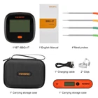 IBBQ-4T Features: Dimensions:3.46"x3.46"x1.54"/88mmx88mmx39mm Weight: 5.82oz/165g Battery: 2000mAh built-in lithium batteryAPP:BBQ-4T / Pro Wireless Connection: Wi-Fi Connection. Requires 2.4GHz Wi-Fi (Support IEEE 802.11b/g/n)Short Time Measurement Range : 32℉~572℉ (0℃ to 300℃) Continuous Monitoring Range:32℉~482℉ (0℃ to 250℃) Temperature Accuracy: ±1.8℉/±1℃ Wireless Connection: Wi-Fi Connection. Requires 2.4GHz Wi-Fi (Support IEEE 802.11b/g/n) Compatibility: IOS 13 or above, Android 4.4 or above Display Type: Black-and-white LCD Dimensions of LCD Display: 53mmx35mm Waterproof Grade: IPx3 rated Data Storage: free App storage Adapter: 5V/1A Calibration:±12℉ IHT-1P Features: Dimensions:160mm*38mm*16cm Gross Weight:188g Net Weight:76gMeasurement Range :-58℉~572℉ (50℃ to 300℃)Temperature Accuracy: ±1℃/±2℉ Calibration Range: -5℉~5℉ (3℃ to 3℃)Display Type: FSTN ScreenDimensions of LCD Display: 40mm*16mmWaterproof Grade: IPX5 ratedBattery: 250mAh built-in lithium batteryAdapter: 5V>500mAStorage Carrying Case Features: Dimensions: 6.7"x4.7"x2.3"Weight: 5.61 Ounces.Material: Safe EVAClassic 360 degree zipper designWater Resistant: YESShockproof: YESScratch resistant: YESShockproof: YESEasy to Carry: YES WHAT YOU GE?1 x Thermometer IBBQ-4T with 4 Meat Probes 2 x Probe Clips1 x Food Instant Read Thermometer2 x USB Cable1 x User Guide1 x Storage Carrying Case 【IBBQ-4T 2.4G Wi-Fi Connection】Download BBQ-4T or Pro app, this grill thermometer is ONLY support to connect with 2.4GHZ Wi-Fi.Also,support monitor multiple devices with your phone easily through one APP as well. 【IBBQ-4T with Timer & High and Low Alarm Function】The 4 colorful probes digital oven thermometer has count-down timer, which is very convenient for you to check the temperature during long cooking,or you can set a timer to remind on special occasions.What’s more, IBBQ-4T barbecue thermometer supports high and low alarm, the device and phone will trigger the alarm when temperature reached, which let you free and have more time to enjoy with family and friends. 【Calibration Function of Both Unis 】IBBQ-4T meat thermometer and Instant read thermometer IHT-1P both support calibration.The IBBQ-4T for short time measurement range:32℉~572℉ (0℃ to 300℃), the continuous monitoring range: 32℉~482℉ (0℃ to 250℃). Calibration:±12℉. The IHT-1P with a wide range of -58℉ ~ 572℉(-50°C~300°C).Calibration range: -5℉~5℉( -3℃ to 3℃) perfect for beef, chicken,pork,fish,lamb,deep frying, making candy, and baking and other daily use. 【Instant Read Thermometer IHT-1P】 The fast read food thermometer responds in 3-5 Seconds,foldable probe can be using in rainy days and easy to carry when camping,hiking and other outdoor activities.The cooking grill thermometer could keep the high precision after a long period of using. Please note: The charging port is not waterproof, please fully insert the rubber cover in when clean it. 【Convenient to Carry Storage Case】This Travel Protective Case is with smooth 360 degree zipper convenience for easy in opening and closing. Specifically designed to fit multiple types food cooking thermometers with separate foam storage spaces for each component of your wireless remote grill thermometer including the meat bbq thermometer, probe, clips and batteries.Even better can store instant read thermometer in the inner pocket as well.