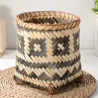 Wicker Waste Paper Basket Woven Baskets Bamboo Trash Can Car Decor