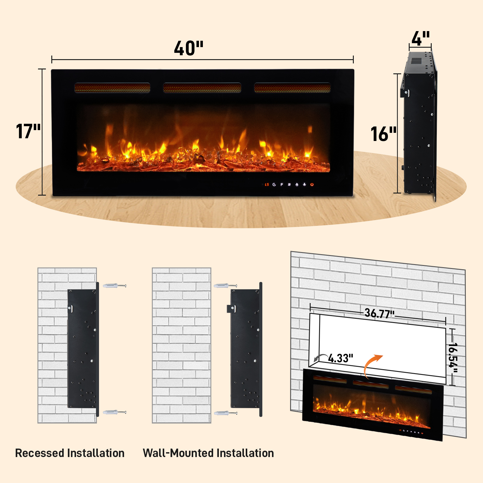 listing template VISIT OUR STORE SIGH UP FOR EMAIL Wifi Electric Fireplace 36''-60'' 1500W Wall Mounted Freestand Fireplace Heater Introductions: Bring warmth, style, and smart technology into your home with the 36"/ 40"/ 50"/ 60 " Smart WiFi Electric Fireplace Insert. This versatile fireplace offers modern convenience with multiple control options, including a WiFi-enabled app, remote control, and intuitive touchscreen panel, allowing you to easily adjust temperature, flame colors, brightness, and more from anywhere. Designed to fit seamlessly into any space, this 1500W heater can be wall-mounted, recessed, or used as a freestanding unit. With 12 color flame options, 5 brightness settings, and safety features like overheat and tip-over protection, this fireplace offers the perfect blend of functionality, ambiance, and elegance, transforming your living space into a cozy retreat year-round. Features: 1. Smart Control: Control your fireplace heater through multiple options: the included remote control, an intuitive touchscreen panel, or the advanced WiFi-enabled app. Whether you're relaxing on the couch or away from home, you can easily adjust the temperature, flame color, brightness and timer settings from anywhere, at any time, ensuring a cozy atmosphere with just a few taps. 2. Customizable Flames: Create the perfect ambiance with 12 vibrant flame color options and 5 adjustable brightness levels. Whether you want a subtle, calming glow or a bright, festive display, this fireplace allows you to set the scene to match any mood or occasion. The option to enjoy the flames without heat also makes it a versatile decorative feature for year-round enjoyment. 3. Powerful and Efficient Heating: Equipped with a powerful 1500W heating element, this fireplace quickly heat rooms up to 400 sq.ft.. It allows you to easily customize the temperature to your exact comfort level, ranging from 62°F to 82°F, ensuring a perfectly heated environment no matter where you place it. 4. Overheat & Tip-Over Protection: Designed with your safety in mind, this electric heater includes advanced overheat and tip-over protection. If the unit overheats or is accidentally knocked over, it will automatically shut off to prevent any potential hazards. This makes it a safe choice for households with children or pets, giving you peace of mind while staying warm. 5. Three Mounting Options: The electric fireplace provides three adaptable installation options: wall-mounted, recessed, and freestanding. Whether you want to save space by mounting it on the wall, embed it into a custom-built unit, or simply use it as a standalone piece, this fireplace adapts to your preferences. Complete with easy-to-follow instructions and all the necessary hardware. Size ① :36 inch Specifications: 1. Material: Metal, Glass 2. Power: 1500W 3. Heating Element: Heating wire 4. Heating Area: Approx. 400 sq.ft 5. Timer: 1-8 Hours 6. Temperature Adjustment: 62-82℉ / 17-27℃ 7. Digital Display: Yes 8. Stand Included: Yes 9. Flame Colors: 12 Individual Colors, 12-Color Cycling Mode 10. Flame Brightness Mode: L1-L5 11. Flame Only Mode: Yes 12. Heating Only Mode: No 13. Tip-Over Protection: Yes 14. Log Type: Faux Log and Crystal Stones 15. Remote Control: Included 16. Product Dimensions: (36 x 4.1 x 17) in / (91.5 x 10.3 x 43.2) cm 17. Weight: 29.1 lbs / 13.2 kg 18. Certification: cETL Size ② :40 inch Specifications: 1. Material: Metal, Glass 2. Power: 1500W 3. Heating Element: Heating wire 4. Heating Area: Approx. 400 sq.ft 5. Timer: 1-8 Hours 6. Temperature Adjustment: 62-82℉ / 17-27℃ 7. Digital Display: Yes 8. Stand Included: Yes 9. Flame Colors: 12 Individual Colors, 12-Color Cycling Mode 10. Flame Brightness Mode: L1-L5 11. Flame Only Mode: Yes 12. Heating Only Mode: No 13. Tip-Over Protection: Yes 14. Log Type: Faux Log and Crystal Stones 15. Remote Control: Included 16. Product Dimensions: (40 x 4.1 x 17) in / (101.6 x 10.5 x 43.2) cm 17. Weight: 32 lbs / 14.5 kg 18. Certification: CETL Size ③ :50 inch Specifications: 1. Material: Metal, Glass 2. Power: 1500W 3. Heating Element: Heating wire 4. Heating Area: Approx. 400 sq.ft 5. Timer: 1-8 Hours 6. Temperature Adjustment: 62-82℉ / 17-27℃ 7. Digital Display: Yes 8. Stand Included: Yes 9. Flame Colors: 12 Individual Colors, 12-Color Cycling Mode 10. Flame Brightness Mode: L1-L5 11. Flame Only Mode: Yes 12. Heating Only Mode: No 13. Tip-Over Protection: Yes 14. Log Type: Faux Log and Crystal Stones 15. Remote Control: Included 16. Product Dimensions: (50 x 4.1 x 17) in / (127 x 10.5 x 43.2) cm 17. Weight: 42.8 lbs / 19.4 kg 18. Certification: CETL Size ④ :60 inch Specifications: 1. Material: Metal, Glass 2. Power: 1500W 3. Heating Element: Heating wire 4. Heating Area: Approx. 400 sq.ft 5. Timer: 1-8 Hours 6. Temperature Adjustment: 62-82℉ / 17-27℃ 7. Digital Display: Yes 8. Stand Included: Yes 9. Flame Colors: 12 Individual Colors, 12-Color Cycling Mode 10. Flame Brightness Mode: L1-L5 11. Flame Only Mode: Yes 12. Heating Only Mode: No 13. Tip-Over Protection: Yes 14. Log Type: Faux Log and Crystal Stones 15. Remote Control: Included 16. Product Dimensions: (60 x 4.1 x 17) in / (152.4 x 10.5 x 43.2) cm 17. Weight: 51.8 lbs / 23.5 kg 18. Certification: CETL Package Includes: 1 x Electric Fireplace 2 x Stands 1 x Remote Control 1 x User Manual You might like this more>> Set of 10 Plastic Folding Chairs Wedding Party Event Chair $135.99 Makeup Case Cosmetics Organizer 2 Small & 5 Large $23.65 12-Batten 4 Tier Storage Organizer Shoes Tower $24.59 2PC Patio Rattan Wicker Chair Sofa Patio Garden Furniture $99.99 High Gloss TV Unit Cabinet Stand with LED Lights $132.99 Commercial Heavy Duty Clothing Garment Rolling Collapsible $53.99 Shipping Policy 1. Ship worldwide from New Jersey by reliable shipping companies -- USPS, UPS, FEDEX, DHL, etc., and only to VERIFIED PAYPAL ADDRESS. Transport Delivery ETA. Package handling only takes 1 business day at our warehouse, so please make sure 