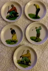 round plates measure 4 inches in diameter and are made of durable plastic, ensuring they can withstand frequent use or display. In addition to the stackable design, these plates also feature a trinket dish and coaster, making them a versatile addition to any home or office. The late 20th-century era and American culture add to the uniqueness!