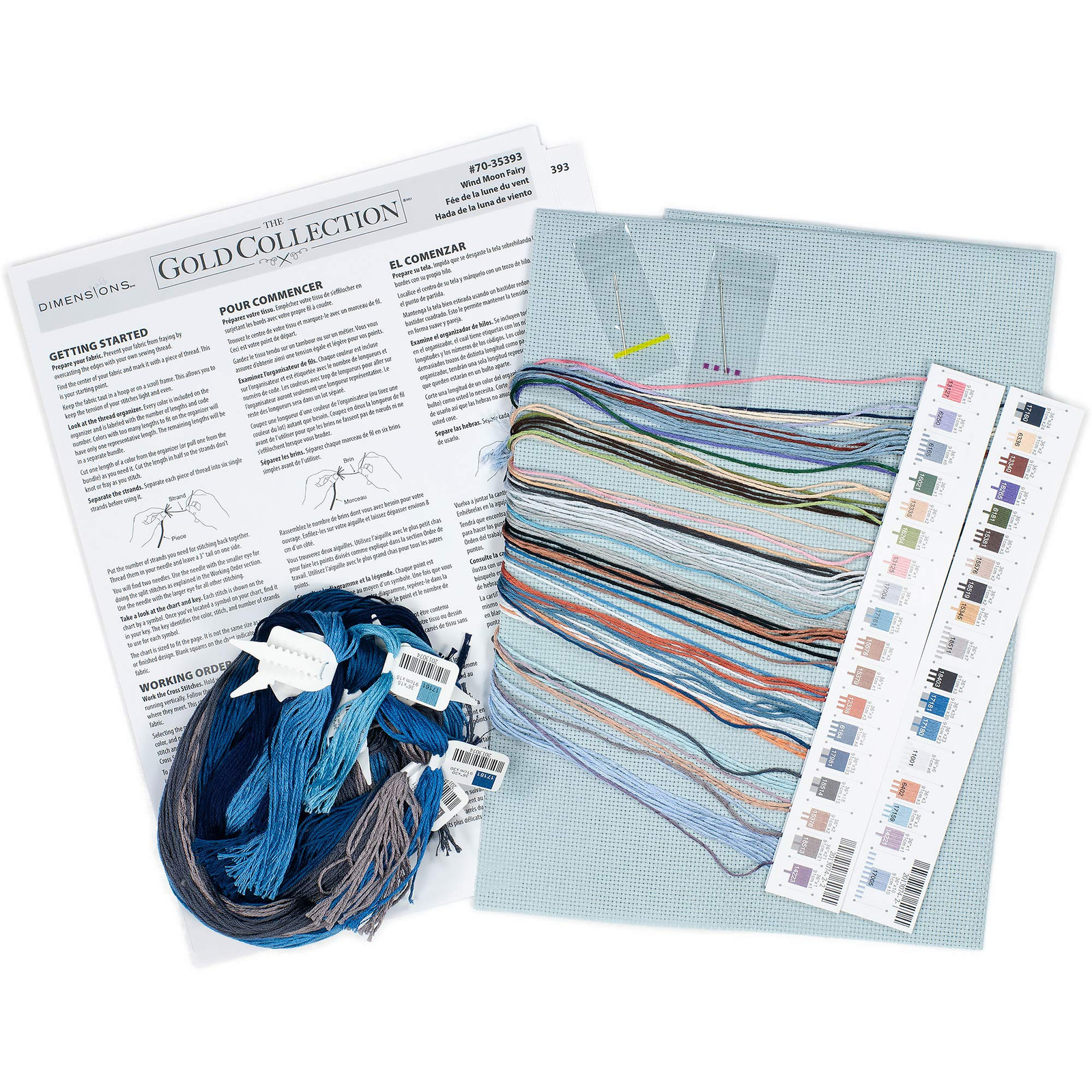 Wind Moon Fairy Gold Collection Counted Cross Stitch Kit - 16 Count Grey Aida Fabric - Premium Embroidery Kit for Enchanting Fairy-Themed Art Projects