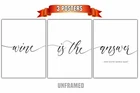 Wine Is The Answer , Set of 3 Prints, Life Quotes, Minimalist Inspiration Art, Home Wall Decor, Typography Art, Wall Art, Multiple Sizes This listing is for unique UNFRAMED prints in the size of your choosing. This is the perfect gift or home decor poster print for the bedroom, over the bed, classroom, or a house warming gift. I use only the highest quality canon and HP heavyweight paper with a smooth finish. Made in the USA personally by me assuring quality. Please note this Item does NOT come framed. Thank you for stopping by my shop. ░▒▒▓ About this Listing: ▓▒▒░ - 3 High quality posters printed on Acid free high quality paper. Resolution: 300 dpi for the best quality printing. Size: 5x7", 8x10”, 11x14", 12x16" or 18x24 (Send us a message for larger and other custom sizes) All sizes are standard and easily framed. ╱╱╱╱╱╱╱╱TERMS OF USE ╱╱╱╱╱╱╱╱ - For Personal Use Only. - Colors on monitors may vary. - Frame is not included. Thanks for Visiting. Please check out our other items!
