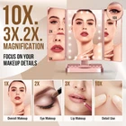 This makeup mirror is a game-changer! The 2000mAh rechargeable battery saves money on replacements and lasts so long. I love the three color lighting options—cold, warm, and natural—which are perfect for any makeup situation. Adjusting brightness is super easy with the touch controls. The magnification panels (10X, 3X, 2X) make every detail crystal clear. No more struggling with bad lighting—this mirror is a must-have for flawless application!