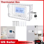 Product Description Bullet Points: For Most Thermostat Sizes: This thermostat lock box with key can fit most thermostats in the market. It has a combination lock design with up to 10000 possibilities. You can keep your thermostat safe from tampering and no longer worry about children changing the settings. Convenient to Install: This lock box covers your thermostat and can be locked with the 4 extension screws included. You can also attach glue or screws for extra firmness. It installs in minutes and protects your thermostat from unauthorized access. Visible and Reliable: Our thermostat lock box with key uses a high-quality acrylic material that is clearer and more transparent than other choices. You can see the display clearly without having to open the box. It also avoids discoloration and yellowing, making it dependable and long-lasting. Applicable Scenes: This lock box with key is designed to protect the thermostat from unauthorized access or tampering. It is suitable for houses, factories, schools, hotels, restaurants, and other places where thermostats are installed. It is widely applicable and can prolong its service life. Damage-free Installation: You can install this open thermostat guard in two ways: either by punching holes in the wall or by using adhesive tape. It will secure your thermostat and prevent wall damage. This thermostat lock box with key is a simple and effective way to secure your thermostat from children and unauthorized access. Just place it above the thermostat and lock it with the key. The box is more transparent than other models, so you can easily see the temperature and settings. It is suitable for homes, offices, factories, and other places where you need to control the thermostat. Specification: Product Name: Thermostat Lock Box Product size: (approx.) 18.5*12*5.6 cm .(7.28*4.7*2.2 inch) INSTALLATION: No need to remove the thermostat from the wall, just line up on the existing thermostat and install and finish. We have both perforated and non-perforated methods of installation to protect your walls from damage. Package List: Thermostat Lock Box * 1 Notes: Due to the lighting effects and camera angles, the color of the item and that shown in the picture might have a nuance. Due to manual measurement, there might be a tolerance in the product size.
