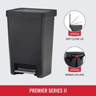 Product Description Premier Series II Step-On Trash Can for Home and Kitchen, with Lid Lock and Slow Close, 13 Gallon, Charcoal HANDS-FREE USE: Step-on the charcoal stainless-steel foot pedal to open the container for sanitary, hands-free waste disposal MODERN DESIGN: The sleek charcoal body with complementary metal accent enhance your space, Interior venting channels thoughtfully designed to make removing heavy trash bags effortless. LID LOCK: Discrete lid lock keeps the container lid locked open for longer tasks, or closed to keep out pets and children SLOW CLOSE LID: Quiet, controlled lid closure is designed to reduce unwanted noise and ease down gently HOLDS BAG IN PLACE: Integrated LinerLock(TM) technology secures the bag to the container and prevents slipping with heavy loads About Us We are a reputable seller with many years of experience selling on eBay. Our goal is to provide high-quality products and excellent customer service. Shipping Items will be shipped within 1-3 business days when we received payment. (Orders are not processed on weekends & holidays) Tracking information will be sent once item is shipped. Delivery time depends on destination and other factors Item is shipped to ebay address. Leaving correct address can minimize delay. For international shipping and shipping to Guam, Hawaii and Alaska, Please contact us before placing the order. International buyers please note: Import duties, taxes and charges are not included in the item price or shipping charges. These charges are buyer’s responsibility. We will try our best to reduce the risk of the custom duties. Local pick-up is unavailable at the moment. Contact Us We reply any email messages within 1 business / working days(off-duty at weekend). If you do not get a response from us, then please check your junk or spam mailbox. Our Business hours: Mon-Fri 9:00-18:00, UTC/GMT +8 hours. Please contact us either by clicking "contact seller" in the "purchase history" section or simply click "ask a question" at the bottom of this page. If you are unsatisfied with our item or service, please contact us before leaving any feedback. We are committed to resolve all issues in a friendly and satisfactory manner.