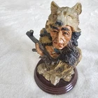 Wolf Headdress Native American Indian Head Sculpture Heavy Resin Bust 5"