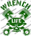 Wrench Life,Mechanic,Gear Head,Wrenching,Skull,Pistons,Stickers,Vinyl Decal PatriotFitGear SIZE IS Aprox 5"x6" If you need a different size please ask. Decal is Vinyl Cut so it will be one single color. The vinyl is 3MIL, resistant to Sun, Rain, Snow & Sleet. The decal will stick to any hard, smooth surface and are suitable for wet locations (Boat, Car, Car Window, Laptop, Instrument Cases, Snowboard Decks, School Lockers, Mirrors, etc.) An application (transfer tape) overlay allows for precise and easy placement. All decals are computer cut and are customizable. HOW TO APPLY STEP 1: CLEAN THAT AREA GOOD! First make sure you have a dry place and no wind to install your decal. Make sure to prep the area, this is the most important part of installing a decal! If you put your decal or sticker on a dirty surface, it will just pick that dirt and grime up like a lint roller does your shirt, those aren't so sticky after you use them are they! So let’s make sure the area is nice and clean so that it can adhere to where you are going to place it. You can use soap and water, rubbing alcohol, or any other fast drying cleaner. My favorite is rubbing alcohol since it dries by itself within seconds and leaves no residue behind. On that note, do NOT use anything like Windex or other household spray cleaners that leave a residue behind or oily substance, that defeats the purpose and will cause your decal/sticker not to adhere to the best of it capabilities. STEP 2: DECIDE AND PEEL ! After you have cleaned your car, you now need to decide where you want to center your decal in the area you cleaned. I use a measuring tape to measure from different spots on the car to make sure I have it exactly where I want it and that it will not turn out crooked. When I measure I use a piece of masking tape to mark the measurements, normally four for left/right/top/bottom. Then I have a somewhat boxed area to force me to place the decal where it should go. Be aware after you stick it, you might cannot undo it and use it again, since it can separate the design or text from each other. After you decide where you want it, go ahead and start to peel your decal back, if it doesn't stick to the transfer tape the first pull, replace the transfer tape and push it together with your fingers or use a credit card to press together. STEP 3: PLACE THAT DECAL! So you cleaned your area and also decided how and where you are going to place your new decal or sticker and you made sure your decal can peel apart easily. FOR SMALLER DECALS - Now fully peel the decal off the backing and hold it on the tips of the masking/transfer tape. Try not to touch the back of the decal itself since it could leave dirt on your decals back side. You should have each hand holding the furthest corners from each other and keep it tight so that the decal does not fold in on itself. Place one end of the decal down and then smooth it out to the other end till the decal is fully placed. FOR BIGGER DECALS - Do not fully remove the backing on your decal. You will want to remove about 1/3 of the backing and start by applying that 1/3 of the decal to the car. Then slowly pull more of the backing off while at the same time apply the decal to the car until you have fully installed the decal. Either work left to right or right to left, which ever you feel best doing. Don't forget you can always buy a $1 spray bottle at your dollar store, put ONE small drop of soap in it and fill with water and shake. Then LIGHTLY (I MEAN LIGHTLY) spray the area and then apply the decal. This is only suggest for bigger decals or decals that you need to be in a precise area. STEP 3: THE HARDEST PART! Waiting... yes this is the hardest part, because most people are so impatient that they can't wait and they mess up the decal by removing the transfer tape too early! The best way to allow your decal to dry is out in the sun, having it in the shade or in a cool place will only make it take longer. If you used a mist of soapy water when installing your decal and do not let the sun dry it, then it will take a very long time before it adheres correctly, since nothing is there to remove the water and dry the decal to the surface. Do not try and rush this buy using a heat gun, you can melt the transfer tape and vinyl and when you peel it, it could cause the decal to stretch with the transfer tape. Again the best way is the sun. Finally just give the decal 30 minutes before you remove the transfer tape, go inside and eat lunch. By the time you’re done you should be able to go back outside and finish your decal and be in a good mood from that great lunch and nice cold sweet tea! If your decal is still not sticking, make sure you got it in the sun and it is warm outside, and just give it a bit longer. After ~30 minutes to dry, remove transfer paper.