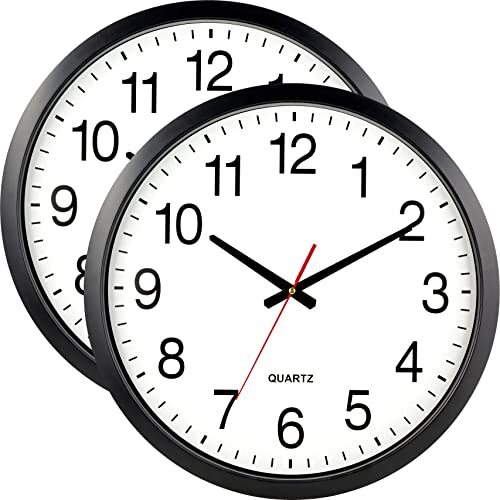 Return Policy Fast Delivery Trusted seller Black Wall Clock Silent Non Ticking - XL 18 Inch, Set of Two Quality Quartz Battery Operated Round Easy to Read Home/Office/Classroom/School Product Description Set of 2 extra large wall clocks 18 inch. Large black bold Arabic numerals against white face creates easy viewing from a distance and every angle. Precise quartz movements accurate time Silent non-ticking mechanism with a sweeping second hand movement. Enjoy a quiet environment! Sturdy plastic frame 1.75" deep. Glass cover protects dial and can easily be leaned with a cloth. Red second hand for extra clarity Easy to read from any angle. Ideal for adults, seniors and children. The perfect wall clock for an office, school classroom, living room, gym, bedroom, master bathroom and any room in your home or business Simple hanging on a nail or hook. Durable yet lightweight. Uses 1 "AA" battery - not included (Note: Plus side of your battery should be inserted first) 1-year manufacture warranty Shipping Returns Payment Shipping Shipping is FREE to all addresses other than APO/PO boxes in the lower 48 states. All our stock ships from US-based warehouses. Shipped via USPS or UPS (depending on location and package weight) Unless stated otherwise, all orders will ship within 24-72 hours of your payment being processed. Check our feedback to see the great reviews of FAST shipping we offer. Returns Seller does not accept returns Payment We currently accept payment via eBay managed payments only. Once payment is cleared, we will dispatch your shipment within 1-3 business days. Please refer to the "Shipping" tab for more information regarding shipping speed to your destination.