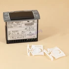 XR06CX-4N1F1 Digital Thermostat Controller Defrost Fans For Refrigerating Product Description The XR06CX, format 32x74x60 mm, is microprocessor based controller, suitable for applications on medium or low temperature ventilated refrigerating units. It has three relay outputs to control compressor, fan, and defrost, which can be either electrical or reverse cycle (hot gas). It is also provided with 2 NTC probe inputs, the first one for temperature control, the second one, to be located onto the evaporator, to control the defrost termination temperature and to managed the fan and it's provided with a configurable digital input. With the HOTKEY it's possible to program the instrument in a quick and easy way. Suitable for appliances including for applications on medium or low temperature ventilated refrigerating units Specification Producer: DIXELL Type: XR06CX-4N1F1 Mounting Measurements: 71mm x 29mm Built-in Depth: 56mm Supply: 110V Voltage Type: AC Probe Type: NTC (probes not included) Number of Relay Outputs: 1 Relay Output 1: NO-20A(8) Input: 1NTC Kind of Protection: IP54 Version: Defrosting Function / Time Control Measuring Range: -40°C up to +110°C Display: 2½ Digit Defrost Two defrost modes are available through the td parameter: • td=EL defrost through electrical heater (compressor OFF); • td=in hot gas defrost (compressor ON). Other parameters are used to control the interval between defrost cycles (id), its maximum length (Md) and two defrost modes: timed or controlled by the evaporator's probe. At the end of defrost dripping time is started, its length is set in the dt parameter. With dt=0 the dripping time is disabled. With FC parameter it can be selected the fans functioning • FC=cn will switch ON and OFF with the compressor and not run during defrost • FC=on fans will run even if the compressor is off, and not run during defrost After defrost, there is a timed fan delay allowing for drip time, set by means of the Fd parameter. • FC=cy fans will switch ON and OFF with the compressor and run during defrost • FC=oY fans will run continuously also during defrost. An additional parameter FS provides the setting of temperature, detected by the evaporator probe, above which the fans are always OFF. This is used to make sure circulation of air only if his temperature is lower than set in FS. FANS AND DIGITAL INPUT When the digital input is configured as door switch iF=do, fans and compressor status depends on the dC parameter value: dC=no normal regulation; dC=Fn fans OFF; dC=cP compressor OFF; dC=Fc compressor and fans OFF. When rd=y, the regulation restart with door open alarm SAFETY PRECAUTIONS • Check the supply voltage is correct before connecting the instrument. • Do not expose to water or moisture: use the controller only within the operating limits avoiding sudden temperature changes with high atmospheric humidity to prevent formation of condensation. • Warning: disconnect all electrical connections before any kind of maintenance. • Fit the probe where it is not accessible by the End User. The instrument must not be opened. • In case of failure or faulty operation send the instrument back to the distributor or to “Dixell S.r.l.” (see address) with a detailed description of the fault. • Consider the maximum current which can be applied to each relay (see Technical Data). • Ensure that the wires for probes, loads and the power supply are separated and far enough from each other, without crossing or intertwining. • In case of applications in industrial environments, the use of mains filters (our mod. FT1) in parallel with inductive loads could be useful. Package Include 1 X Dixell XR06CX Digital Thermostat Controller(Whole package with accessories)