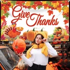 XTRALARGE | 72x44 INCH : Transform your Thanksgiving decorations into a festive feast with our xtralarge 72x44 Inch give thanks banner which consists with 20 feet white ribbon roll. and 4 holes in the corner. Elevate thanksgiving decorations for home, creating the adorable Thanksgiving party decorations. It's time to celebrate in style! Enhance your outdoor or indoor space with a festive thanksgiving backdrop, The Thanksgiving banners are large enough to cover a significant area of your space. REUSABLE | STURDY | EASY TO INSTALL : Elevate your Friendsgiving or Thanksgiving decorations with our reusable, sturdy and easy to install give thanks backdrop for Thanksgiving decorations. Create memorable moments with thanksgiving decorations indoor or outdoor and stunning Thanksgiving backdrops for photography. These thanksgiving wall banner effortlessly transform any space! Decorate your home, or any other place with a happy Friendsgiving banner and enjoy fall decorations. PRINTED ADORABLE DESIGNS : Uplift your Friendsgiving party with our printed adorable designs! From a charming Thanksgiving backdrop to Friendsgiving photo backdrop, our collection brings warmth and style to your festivities. Explore Friendsgiving decor that's as delightful as your gathering! Set the scene for an unforgettable Friendsgiving gathering with our thanksgiving wall banner and a custom thanksgiving party decorations that adds a personal touch to your celebration. FINE FINISH | TIMELESS MESSAGE: Elevate your Thanksgiving party decorations with our beautifully crafted Give Thanks Banner. Designed with a fine finish, this banner adds a touch of elegance and warmth to any setting. Whether you're creating a welcoming atmosphere with a Friendsgiving banner or adding charm with a Friendsgiving sign, this banner helps set the perfect tone. Use it as a Happy Thanksgiving backdrop to express gratitude and make lasting memories. Enhance your celebration. HARVEST THEME THANKSGIVING DECORATIONS : Celebrate the season in style with Thanksgiving Decorations! Create a festive atmosphere with happy Friendsgiving decorations ideal as Friendsgiving photo backdrop. happy Thanksgiving banner to cherish the memories. Elevate your space with thanksgiving poster & decoration, making your gathering truly special. Embrace the warmth of autumn and gratitude with these delightful accents. Elevate your Friendsgiving party decorations with our Give Thanks Banner. Powered by BRND.ME