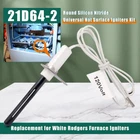 YUXIVCNE 21D64-2 Furnace Hot Surface Ignitors Replacement for White Rodgers Round Silicon Nitride Universal Hot Surface Igniters Kit (SSN2000) Product Details Manufacturer: YUXIVCNE Part Number: 21D64-2 Item Weight: 3.52 ounces Product Dimensions: 6.1 x 3.93 x 1.57 inches Country of Origin: China Item model number: 21D64-2 Included Components: 21D64-2 Furnace Hot Surface Ignitors Batteries Required?: No Universal Compatibility: This ignitors kit is compatible with a wide range of furnaces, including compatible with White Rodgers Round Silicon Nitride models. It offers a versatile solution for replacing faulty or worn-out ignitors, ensuring compatibility and ease of installation. Silicon Nitride Construction: The furnace hot surface ignitors is made of Silicon Nitride, ensure excellent thermal conductivity and resistance to extreme temperatures. Surface igniters universal 120 Volt HVAC igniters provides reliable and efficient ignition of the furnace burner. Enhanced Efficiency: By replacing your old ignitors with the 21D64-2 model, you can improve the efficiency of your furnace. The hot surface ignitors provides a consistent and reliable ignition source, resulting in better combustion and improved energy efficiency for your heating system. Hot Surface Ignition: This ignitors utilizes hot surface ignition technology, which provides reliable and efficient ignition of the furnace burner. The ignitors is designed to provide consistent and reliable performance, ensuring smooth operation of the furnace, helping to save on energy costs. Easy Installation: The kit includes all the necessary components and instructions for easy installation. Nitride ignitors with 15.5" leads, included universal mounting bracket and scremounting adapter bracket and 2 ceramic wire nuts, making it a convenient replacement option. COMPATIBILITY: Compatible with Evcon 211, 271D, 271 025-27774-000 1474-051 2TIN27INM, 27IP 025-26043-000 1474-052 aw 025-29050-000 Compatible with Goodman Raypak 025-32625-000 10401009 600915 025-32626-000 Compatible with Heit Rheem 025-39241-000 1096048, 62-22441-01 373-05342-700 Compatible with Hupp Industries 62-22868-82 473-12509-001 9050 62-22868-93 Williamson 9050 icp 1009604 109804 Compatible with Mor Flo -081 3200618 Compatible with Superior Fireplace 174-052 Hordyne 94851 Compatible with Detroit Radiator ### Compatible with Weil Mclain 511-330-139 511-330-190 511-330-193 White LBCo 1120-07549 Compatible with White Rodgers 21064-2 767A-301 7-306 767A-310 T67A-311 767A-350 7674-353 TGTASS, ### Metager 41-409,41-410,41-411 201N a1ai2s1-4t4 LH332S001A 201 uxs3zs002 50018 1380684 C238 654 c242 672 FEATURES: Round shape: The ignitors has a round shape, which allows for easy installation and replacement in most furnaces. Silicon Nitride construction: The ignitors is made of Silicon Nitride, features excellent thermal conductivity and resistance to extreme temperatures. Hot surface ignition: This ignitors utilizes hot surface ignition technology, which provides reliable and efficient ignition of the furnace burner. Easy installation: The kit includes all the necessary components and instructions for easy installation, making it a convenient replacement option. Long lifespan: The Silicon Nitride construction ensures a longer lifespan compared to traditional ignitors, reducing the need for frequent replacements. Energy-efficient: The hot surface ignition technology used by this ignitors is more energy-efficient than other ignition methods, helping to save on energy costs. Reliable performance: The ignitors is designed to provide consistent and reliable performance, ensuring smooth operation of the furnace.