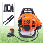 Description This is a high-powered two-stroke backpack leaf blower. The two-stroke engine makes this blower very efficient and powerful. And it is a labor-saving backpack blower that is easy and convenient to operate. It is suitable for ecological cleaning, road dusting, snow blowing, forest fire fighting, garbage cleaning, etc. Details Wide Shoulder Straps: This blower comes with two balance back straps, which can evenly distribute the pressure of the blower. So it is comfortable to carry. Comfortable Back Cushion: This blower has a soft and comfortable back cushion. It can dampen vibrations, relieve shoulder pressure and reduce back impact. So you will not feel tired when carrying it. Easy-to-start Device: This blower's switch is an original wheel rope device with a pull-plate start. So the blower is easy to operate by pulling the rope device. Filter: There is a filter element under the starter that can filter impurities and extend the life of the machine. Specification Model: EB808 Engine Displacement: 42.7ml/0.01gal Product Weight: 10kg/22lbs Fuel Tank Capacity: 1.2L/0.3gal Product Size: 42.5*38.5*44.5cm/16.7*15.2*17.5inch Power Form: Mixed Oil (Pure Petrol: Two-stroke Engine Oil: 25:1) Power: 1.25kw Speed: 7000r/min Wind Speed: 70m/s Air Volume: 720m³/h Fuel Consumption: <610g/kw·h Form: Single Cylinder Air Cooling, Two-stroke Package Included 1* Backpack Leaf Blower 4* Tubes 2* Straps 1* Bottle 1* English Manual Notes To prevent gasoline from deteriorating and then clogging the fuel circuit, please do not add fuel into the blower if you are going to store the machine for a long time. Please allow the slight color difference caused by the shooting light and 1-3 cm error due to manual measurement, and make sure you do not mind before ordering. Application It is suitable for ecological cleaning, road dusting, snow blowing, forest fire fighting, garbage cleaning, etc.