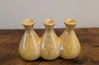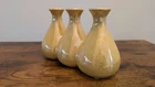 Yellow Luster Triple Bud Vase, Ceramic Retro Iridescent (8" w x 5" h)