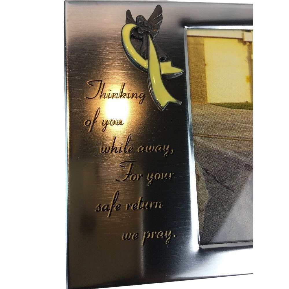This lot features 10 silver metal picture frames with a novelty yellow ribbon quote design, all in their original boxes. Perfect for 4x6 photos and adds a stylish touch to any decor. • Silver metal picture frames • Novelty style and pattern • Features yellow ribbon quote • Sized for 4x6 photos • Comes in original boxes Features: • Includes - 10 Picture Frames • Novelty • Novelty Size: 4 x 6" Measurements: Each Frame Length 6 in Each Frame Width 4 in Condition: New New, All in Original Box, AS IS Stored in Pet/Smoke-Free Environment