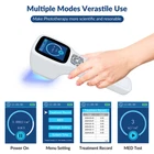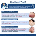 Store Categories Store Categories Cold Laser Therapy Device 880mW cold Laser device 1760mW cold Laser device 3W-305W cold Laser device Touchscreen Cold Laser Device 810nm or 1070nm Helmet 810nm Led Helmet 1070 Led Helmet 308nm Phototherapy Device LED face mask therapy Led Face Blanket Device Led Face Mask Red Light Therapy Pad Silicone Therapy Belt Pad Silicone Neck Therapy Pad Acupuncture Pen Goggles TMS Therapy Machine Other ZJKC Official Store Product Description Default US plug. if you need AU, E U, UK plug, pls contact us. 【 308nm UVB Phototherapy Light】 308 excimer ultraviolet light therapy is narrow-spectrum ultraviolet B band phototherapy device with a peak wavelength of 308nm. Blue light therapy can direct high-energy uv rays to the treatment site, that`s targeted therapy, protecting normal skin. Non-invasive treatment of various skin diseases without side effects. Such as vitiligo, psoriasis etc. Suppresses overactive immune system, activate pseudo-catalase, boosts vitamin D levels. 【308nm Wavelength & 49 Diodes】 Clinically proven 308nm excimer light is the best wavelength to treat vitiligo psoriasis. Equipped with 49 medical d iodes, greatly strengthen s effects of treating various skin diseases. Excimer phototherapy device penetrates multiple skin tissues, reaches the base layer of skin, accurately acts on the core area of the lesion, Induce T cell death, enhance immunity and eliminate lesions. Promote melanin proliferation, even skin tone, promote wound healing 【Wide Range of Applications】 Physiotherapy 308nm UV lamp the most advanced instrument technology for vitiligo treatment. Also treat eczema, psoriasis, dermatitis, leukoderma, atopic dermatitis, various dermatitis, mycosis fungoides, folliculitis, acne, and other obstinate skin diseases.. excimer UVB light therapy machine anti vitiligo psoriasis white spot treat heat rash, cure of scalp psoriasis etc. Home phototherapy UVB lamp,clear the lesion,eliminate the factors of recurrence. 【 M ultifunction Mode】 Uvb light therapy medical devices is 46x46mm±10% irradiation area. 5 different size food grade silicone baffle for accurate target. Dose mode and time mode selected by user according to their requirement. PDT blue light therapy dose setting range 0-5J/cm2; Intensity 5-40mW/cm2 , all adjustable. Photo therapy treatment can be as little as 4 minutes 3-4 times a week for each area treated. Device weight: 0.86lbs easy to carry. 【Package and Service】 Phototherapy UVB light include 1x Host,1x Protective Glasses, 5x Shade Covers, 1x Handbag, 1x User Manual, and 1x Power Supply. 3400mAh large capacity lithium battery can support longtime use. If you have any questions with our vitiligo treatment machine, please contact us.we will give you a satisfied solution. Product Name: 308nm Phototherapy device Mode Number: PD01-B Wavelength: 308nm Light Source: 308nm excimer light Iradiation Area: 46x46mm Dose Setting Range: 0~5J/cm2 , adjustable Intensity: 5~40mW/cm2, adjustable Display Mode: LCD screen Working Voltage: 110-240V, 50/60Hz Power Supply: DC Charging & 3400mAH Rechar geable Battery Effect on Skin Conditions: 308nm UVB light is effective for treating various skin disorders, including: • Psoriasis: Reduces plaques and scaling by slowing down the overproduction of skin cells. • Vitiligo: Stimulates repigmentation by activating melanocytes (pigment-producing cells). • Atopic Dermatitis (Eczema): Decreases inflammation and itchiness by modulating the immune response. • Alopecia Areata: Encourages hair regrowth by affecting immune cells that attack hair follicles. General Guidelines for 308nm UVB Light Therapy: 1.Initial Test: • You can perform a minimal erythema dose (MED) test, which determines the lowest UVB dose that produces a slight redness on the skin within 24 hours. This helps to establish a safe starting dose. 2.Treatment Frequency: • Typically 2-3 times per week: Most treatment plans recommend using 308nm UVB light 2 to 3 times per week, with at least one day of rest between sessions to allow the skin to recover. • Not daily: Daily use is usually not recommended as it increases the risk of skin damage and side effects like burns or excessive redness. 3.Session Duration: • Start with short exposure times: The initial exposure time is usually very short, often ranging from a few seconds to a minute, depending on the MED test results. • Gradually increase: Over time, the exposure duration may be gradually increased as your skin builds tolerance, but this should always be done under medical supervision. 4.Treatment Session: • Eye protection: Always wear protective goggles to shield your eyes from UV light exposure. • Skin protection: For areas that do not require treatment, cover them with clothing or a UV-blocking material to prevent accidental exposure. ADVANTAGES Safe and Efficient - Targeted and no harmless, easy to treat the small lesions where the traditional ones can not reach. It can precisely control the radiation treatment range, and will not shine on the normal skin, avoiding the damage to the normal skin. Quicker Recovery, Short Course, Save Costs – Traditional therapy of vitiligo treatment, need at least two years, and using 308 – nm excimer laser therapy can obviously effect after a period of treatment, 2 to 4 courses, thus greatly save medical costs. Clear The Lesion, Prevent Recurre nce – It is not easy to relapse after the 308 – nm excimer light therapy ,this is one of the biggest highlights from the traditional phototherapy, it can eliminate the vitiligo, fundamentally eliminate the factors of recurrence. Operation Is Simple – Handheld integration design, convenient treatment, can enjoy professional phototherapy effect without leave home.It is lightweight, portable and is powered by the AC adapter. UV goggles for eye protection are also included in the set. Easy To Treat – Treatment can be as little as 4 minutes 3-4 times a week for each area treated. 