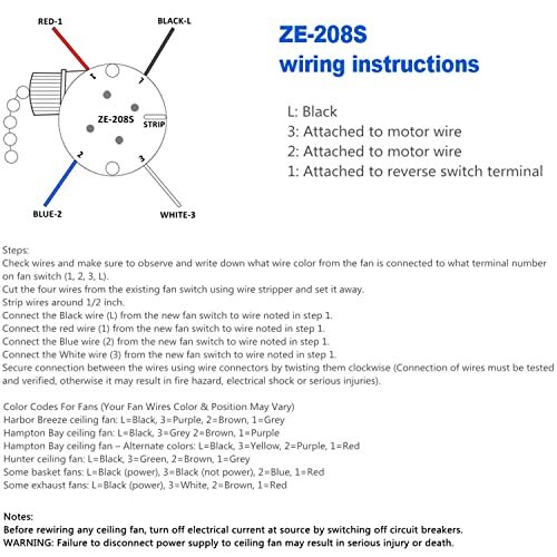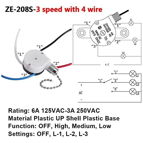 Ceiling Fan Switch zing ear ZE-208S e89885 pull chain switch 3 Speed 4 Wire Switch Fan Light Replacement Part With 4 Pre-Installed Wires -Nickel Chain The zing ear ZE-208S e89885 pull chain switch with 4 Pre-Installed Wires, It only takes five minutes to install, very save time and effort. 3 Speed Fan Switch Function: OFF, High, Medium, Low (OFF, L-1, L-2, L-3) Ceiling Fan Parts Certifications: UL approved (USA) - CSA certified (Canada) Fan Light Switch Electrical Rating: 6A 125VAC – 3A 250VAC This 3-speed 4-wire fan replacement switch fits many ceiling fans including Hunter, Hampton Bay, Harbor Breeze, Westinghouse, Litex, Minka, and Casablanca. SHIPPING Domestic Buyers - We have confidence in our products, but if you are not fully satisfied please contact us within 30 days of purchase and you will get full refund. - We ship within 3 business days of payment, usually sooner - We offer FREE shipping on all orders! - We only ship to the lower 48 states, no APO/FPO addresses or PO Boxes allowed International buyers – please note: Import duties, taxes, and charges aren't included in the item price or postage cost. These charges are the buyer's responsibility. - Please check with your country's customs office to determine what these additional costs will be prior to bidding or buying. * Order Cancellation Policy ** You can return a product for up to 30 days from the date you purchased it. 1. The seller reserves the right to cancel the special case only due to eBay cancellation fee. 2. The decision of seller is the final. 3. The seller will respond to the cancellation request within 2 business days. Please wait for the result of cancellation. 4. In case the cancellation is not completed by some reasons, the buyer can follow the options below to get the refund. 4.1 The buyer can reject the item when it arrives. 4.2 The buyer can send the item back to the seller within 30 days If the buyer receives item (USA Shipment ONLY). The seller will provide the FREE return label to the buyer when the buyer opens " Return Item" case on eBay by using the reason as "Change my mind" ONLY. 5. When buyer has placed the order. The order will be processed and completed by automatic warehouse system within 5 minutes. In case that buyer sends the cancellation request after 5 minutes of placing the order, the request will be rejected. **Sending direct message to cancel the order is not allowed for every case.* Return Policy For the return case - If buyer would like to return the items for refund or replacement, please CONTACT SELLER to receive the free return label from seller. The refund or replacement will be processed with the tracking number of return label which is provided by seller only. The other ways of return which are not approved by seller will not be processed for the refund or replacement.