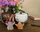 For this specific ghost candle, you can envision it in a soft, creamy color that complements its vanilla pumpkin pie scent. The color could be a pale, ghostly white or a delicate beige, reminiscent of pumpkin pie filling, or it can be any color you want to match your house! When lit, it emits a warm, inviting glow and a delightful aroma of vanilla pumpkin pie, blending the sweet, comforting scent of vanilla with the spicy, autumnal notes of pumpkin and cinnamon. The ghost candle would make a charming addition to a Halloween setting or any autumn decor, combining both a spooky aesthetic with a cozy, inviting fragrance.