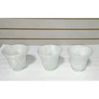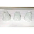 Set of 3, bell shaped, frosted alabaster glass, vanity/ceiling fan light shades. All in great condition with no cracks or chips. 5 inches tall, 5 inches in diameter at widest point