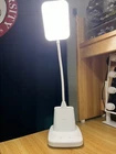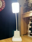 White desk lamp, adjustable, three light settings, dims, charges phone, pencil holder