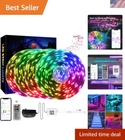 for Bedroom 100 FT4 Rolls, LED Strip Lights with App Control, Sync to Music 5050 RGB with 44 Keys IR Remote, for Room Party Home Decorations Ultra Long LED Strip Lights: 4 rolls of 25FT LED lights, ultra 100ft length are long enough to decorate your entire room. The RGB strip lights can be used for rooms, kitchen cabinets, sofa, stairways, bars, party. Smart App Control: Via APP "Rocilife", you can extensively customize and manage music modes, micro modes, color and scene modes, timing modes, creative DIY effects etc. of the light strip on your mobile . Quick-Adjust IR Remote: Equipped with the upgrade 44-key remote, you can easily adjust the color, dynamic mode, brightness, music mode and creative DIY effects of the LED light strips, which add more fun to your indoor activities. Creative Personalization: The DIY mode in the "Rocilife" APP and the remote control allows you to personalize light effects. 16 million colors and multiple dynamic modes for you to choose, just play to your imagination and creativity, DIY the dimmable LED lights into different special styles. Easy to Install: Our LED lights adopt an adhesive backing and flexible strip design to ensure it can be pasted on any dry and flat surface and can be bent. You can also cut the strip lights according to the actual need of the length of arbitrary. Update Your Home Decoration Light up the night with bold, beautiful LED lighting strips designed to create a more vibrant ambiance in your home, office, or living space. When it comes to your home, bedroom, or even personal event space it’s the lighting the really brings the room together; especially when it comes to creating a relaxing or romantic mood, enjoying a little more energy in the room. That’s why we have this 100 feet LED Light Strip that gives you limitless options for producing gorgeous lighting that’s soft, radiant, beautiful, and totally unique to you and your personal space.