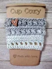 handmade crochet coffee cozy drink cozy sleeve heart button gray dots