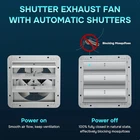 iPower Shutter Exhaust Fan iPower Shutter Exhaust Fan is perfect for removing excess heat, moisture, dust and odors from virtually any residential or commercial space. Applications include: workshops, welding rooms, factories, warehouses, barns, and greenhouses.This wall mounted exhaust fan includes automatic gravity shutters that open and close in conjunction with the operation of the fan. The completely enclosed motor is thermally protected and permanently lubricated.This fan comes fully assembled and ready to install out of the box. Rotating Speed:1450 RPM Air volume:2000 CFM Watts : 110W Voltage: 115V/60Hz Product Detail Automatic Gravity Shutters Safety Grille and Large Fan Blade Bare Leads For Custom Application Application Sheds Barn Greenhouse iPower 18 Inch Wall Mounted Shutter Exhaust Fan, Aluminum, 1400 RPM, 2000 CFM, for Attic, Garage, Louvered Vent, Plant, Greenhouse, Silver Product description The power shutter exhaust fan is perfect for removing excess heat moisture and unpleasant odors from virtually any commercial location including restaurants factories warehouses barns and greenhouses This fan features aluminium blades automatic shutters that open and close in tandem with the operation of the fan The completely enclosed motor is thermally protected and permanently lubricated The fan comes fully assembled out of the box only installation required is the electrical hardwire. Features APPLICATIONS: This 18 inch shutter/exhaust fan with automatic Shutters can help replace your ac unit by cooling your garage, attic, greenhouse shop or chicken coop. INSTALLATION: Can easily be added to a window opening or opening in the wall along with a thermostat to optimize cooling. COOLIN AND GVENTILATION: This industrial grade shutter fan can solve all of your cooling and ventilation needs. RUST PROOF ALUMINUM SHUTTERS: This shutter fan is made with corrosion resistant aluminum shutters and blades. This provides longevity to the fan and will prevent any rust from forming. 115 Volts, 110W, 0. 52A, 1450RPM, 2000CFM. Package Include 1-Pack iPower 18 Inch Shutter Exhaust Fan iPower 20 Inch Wall Mounted Shutter Exhaust Fan, Aluminum, 1200 RPM, 3368 CFM, for Attic, Garage, Louvered Vent, Plant, Greenhouse, Silver About this item [SPECIFICATION] Fan: 20 Inch, 1200 RPM, 3368 CFM, 120V, 60HZ, 125W, Aluminum louvers and blades, Steel frame [HIGH QUALITY] This louvered fan features corrosion-resistant aluminum louvers and blades. This extends the life of the fan and prevents rust. [STRONG PROTECTION]Automatic shutters are open when the fan is running, and close automatically due to gravity when the fan stops running, preventing mosquitoes and dust from entering the room [EASY TO INSTALL] The fan will be delivered to you fully assembled, all you need to do is to use the tools to mount the frame on the wall and connect the power cord and it will be ready to use! [MULTI- PUROPSE] This fan can circulate indoor and outdoor air to freshen up the indoor air, in addition to lowering or raising the indoor temperature, it can be used in warehouses, barns, garages, greenhouses,