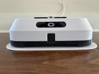 This mop works but it is used and shows cosmetic signs consistent with years of bumping into corners. Please inspect the photos to see the state of the unit. It includes: - Robot mop - Charging base and power cord - Solution container - 2x mop pads