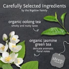 Product Description Our lightly smoky organic oolong tea is perfectly paired with our hand-picked, delicate and aromatic organic jasmine green tea. Together they create a symphony of flavor to engage and delight all of your senses. Life a life steeped in experiences! About the Brand The Story Beginning the moment our founder, Ruth Campbell Bigelow created ""Constant Comment"" Tea in her kitchen in 1945, our family has focused on just one thing: trying to make the finest teas possible. Over the years we have introduced many new flavors as well as concepts in tea. Today we offer a selection of deliciously different blends of teas and green teas, a wide variety of herbal teas and teas flavored with real fruit juice. Today is the number one specialty tea company in the United States. And to think it all began with the first legendary black tea flavored with golden orange rind and sweet spice ""Constant Comment"" Tea. Bigelow takes immense pride in providing the tea drinking community with the best tea at a great value. We only use hand- picked teas, real spices, flavors and herbs. The flavors and blends we have created are second to none. Some of our teas contain up to twenty different ingredients! And because tea is a leaf that can dry out we take steps to protect it. To keep the teas fresh, we seal our tea bags in protective packets. We simply have to protect those delightful flavors. That's why a cup of is aromatic and delicious; a true indulgence for the senses. About the Brand The Story Beginning the moment our founder, Ruth Campbell Bigelow created "Constant Comment" Tea in her kitchen in 1945, our family has focused on just one thing trying to make the finest teas possible. Over the years we have introduced many new flavors as well as concepts in tea. Today we offer a selection of deliciously different blends of teas and green teas, a wide variety of herbal teas and teas flavored with real fruit juice. Today is the number one specialty tea company in the United States. And to think it all began with the first legendary black tea flavored with golden orange rind and sweet spice "Constant Comment"Tea. Bigelow takes immense pride in providing the tea drinking community with the best tea at a great value. We only use hand- picked teas, real spices, flavors and herbs. The flavors and blends we have created are second to none. Some of our teas contain up to twenty different ingredients! And because tea is a leaf that can dry out we take steps to protect it. To keep the teas fresh, we seal our tea bags in protective packets. We simply have to protect those delightful flavors. That's why a cup of is aromatic and delicious; a true indulgence for the senses. Oolong And Jasmine Tea: Our lightly smoky organic oolong tea is perfectly paired with our hand-picked, delicate and aromatic organic jasmine green tea. Together they create a symphony of flavor to engage and delight all of your senses Individually Wrapped: steep by always come individually wrapped in foil pouches for peak flavor, freshness and aroma to enjoy everywhere you go! Gluten -free, calorie-free, and Kosher Parve, USDA Organic and Non- GMO Project Verified Try Every Flavor: There's a tea for morning, noon, and night time relaxation. Try our English Breakfast, Vanilla Chai, antioxidant Green Tea, decaffeinated teas, organic teas and a variety of our herbal tea bags Packaged in the USA: In 1945 Ruth Campbell Bigelow created our first tea, Constant Comment, a strong, flavorful black tea blended with aromatic orange peel and sweet warming spices. Today, Bigelow is still 100% Family Owned Uncompromised Quality: Since 1945, has been a leader in premium tea and proud to be a Certified B Corporation - meeting the highest verified standards of social and environmental performance, transparency and accountability